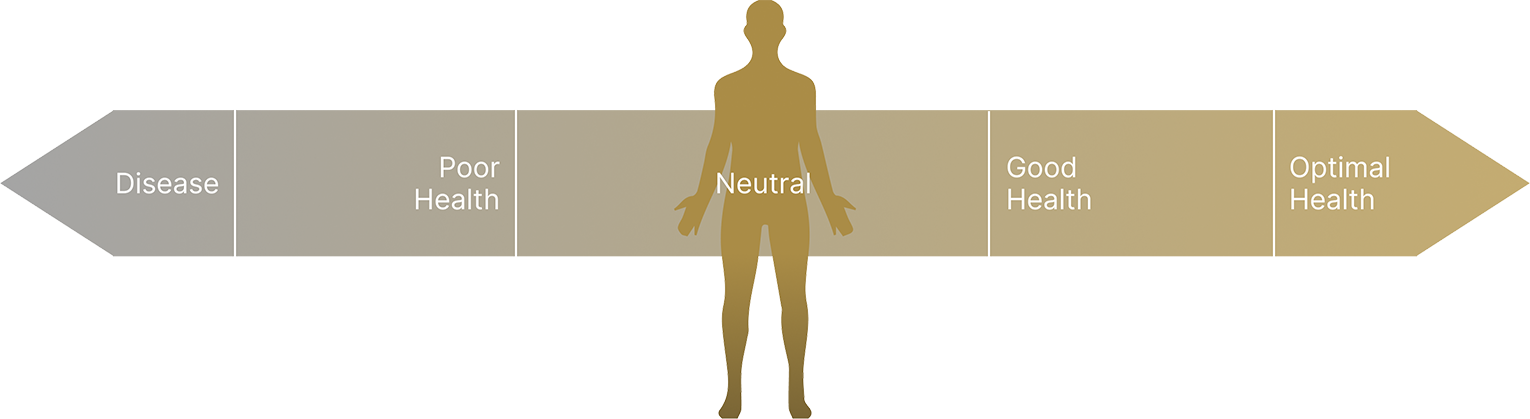 تخيل مسارًا يمتد من ظل المرض إلى بريق العافية - هذه هي خريطة الطريق الخاصة بك للازدهار.من ناحية، يكمن المرض والأمراض المزمنة. ولكن، مع تقدمك للأمام، وتجاوزك للمنطقة المحايدة حيث لا يكفي كونك "غير مريض"، فإنك تدخل عالم العافية الحقيقي.هنا، تكون اختياراتك مهمة - الأطعمة المغذية، والنشاط البدني المنتظم، وإدارة الإجهاد، والعلاقات الاجتماعية الإيجابية